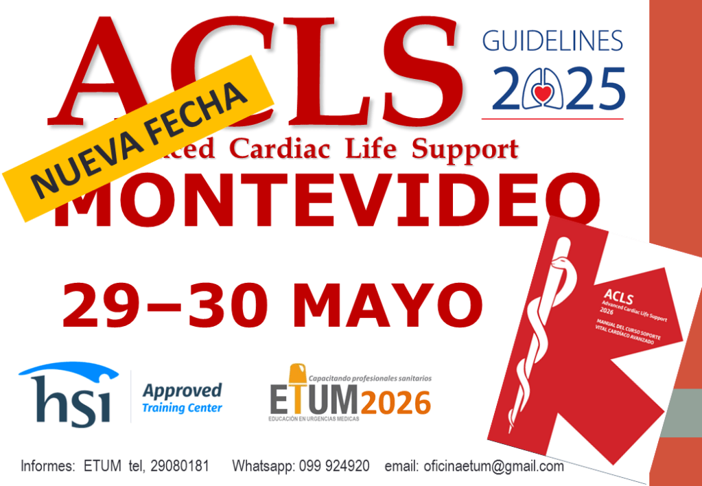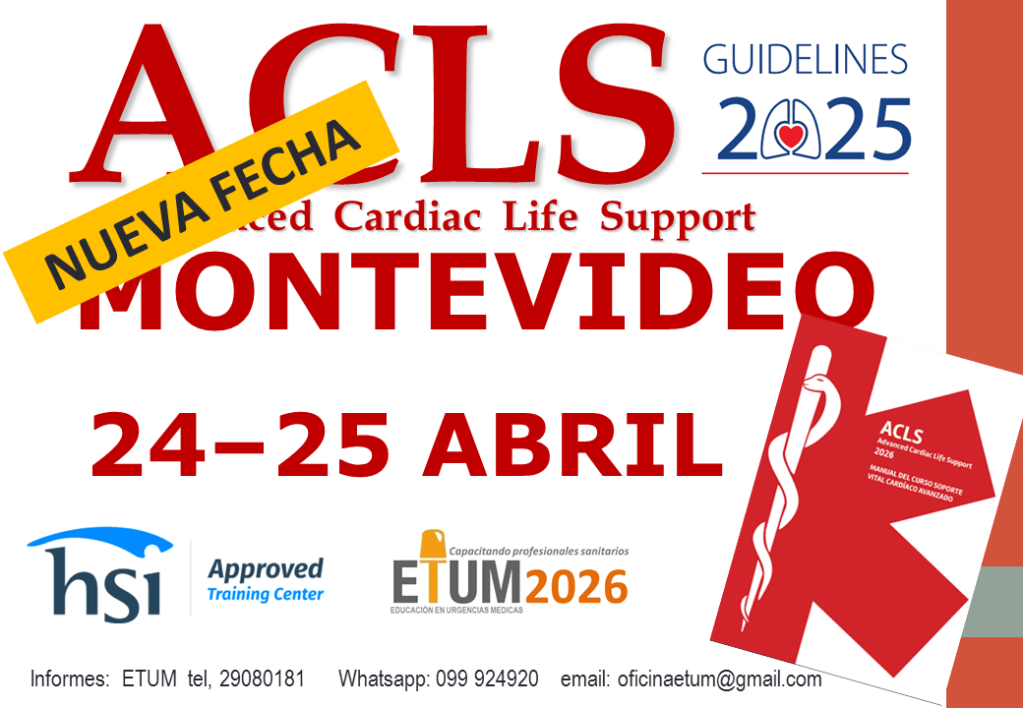 Curso ACLS (Advanced Cardiac Life Support): Curso de Soporte Vital Cardíaco Avanzado en adultos con Certificación Internacional válida por 2 años expedida por el Instituto Americano de Salud y Seguridad (ASHI: American Safety ans Health Institute). EL ACLS es un curso de reanimación cardiopulmonar avanzada, manejo de arritmias y drogas en los cuidados cardíacos de emergencia y que incluye aspectos del manejo del síndrome coronario agudo y los cuidados postparo, así como el rol de la ultrasonografía integrada a la RCP. El curso incluye: Manual de estudio: NUEVO Manual ACLS Guías ILCOR 2025. (Prologado por los Dres. G. Vignolo y A. Niggemeyer)
